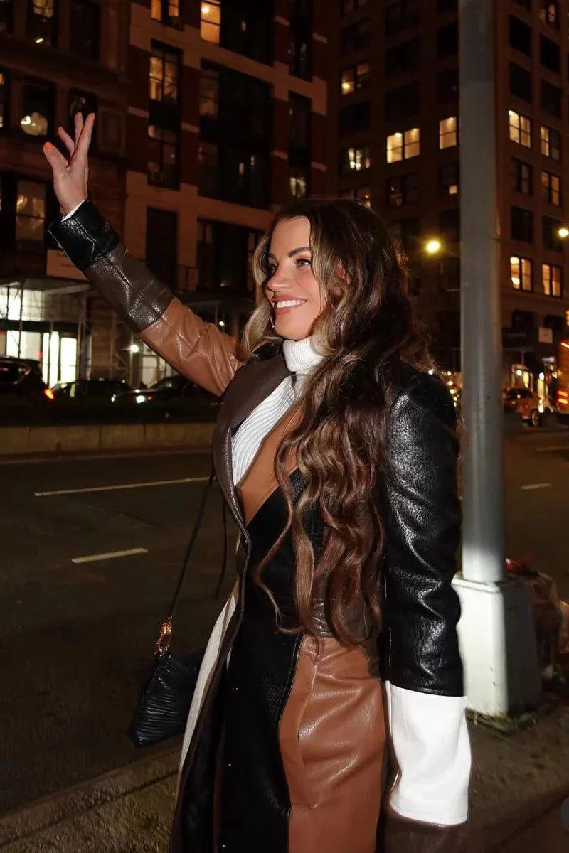Descubre el trenchcoat de patchwork que redefine la elegancia urbana. Con un diseño en marrón, negro y blanco, este abrigo combina la artesanía premium con un toque gráfico contemporáneo.
