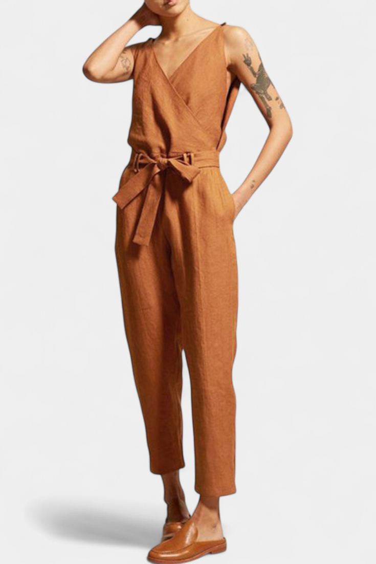 Maggie Mono Sin Mangas con Escote en V y Cintura Cruzada en Algodón