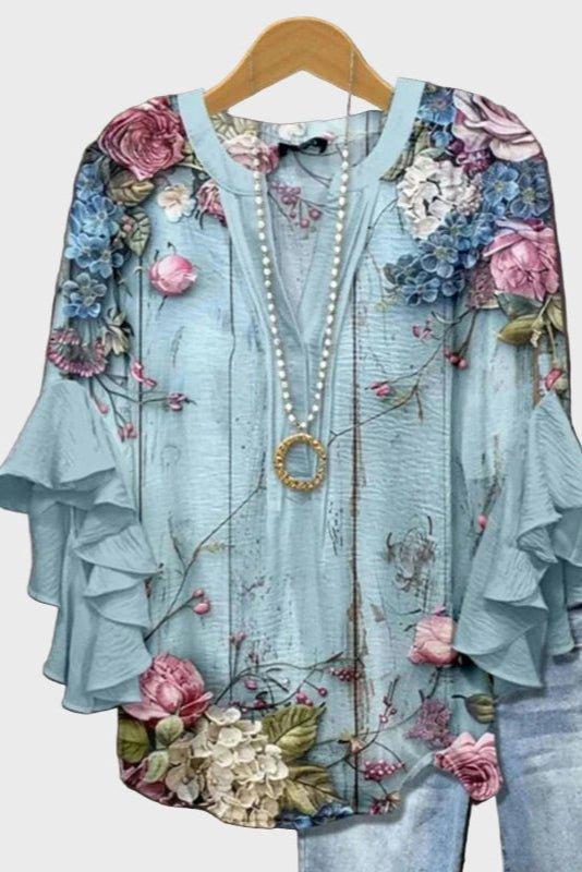 Freja | Turquoise Floral Top
