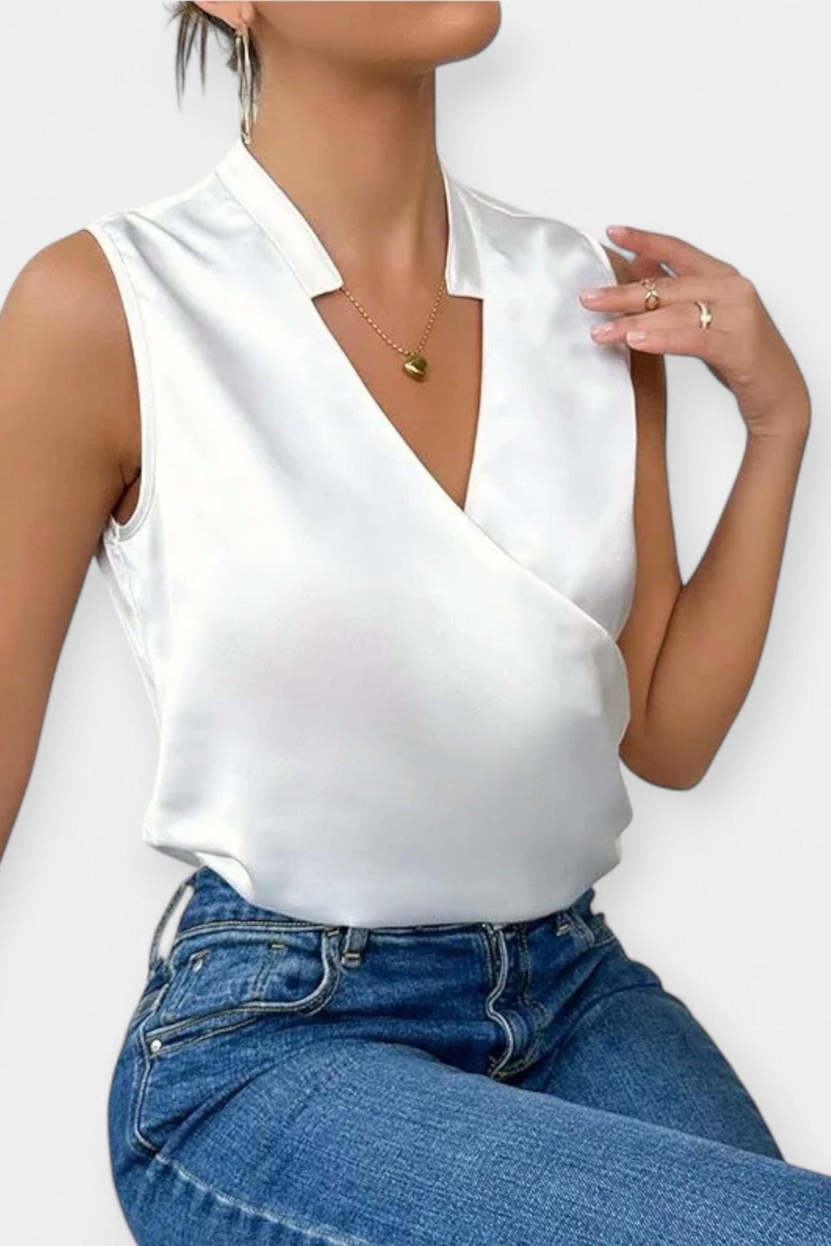 Laura | Top sin mangas es la fusión perfecta de elegancia moderna y artesanía exquisita. Su escote en V envolvente resalta la cintura, creando una silueta sofisticada ideal para cualquier ocasión.