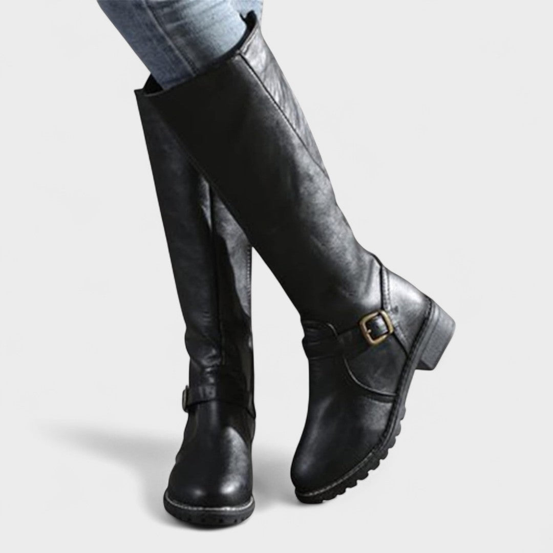 Descubre Asta | Botas Ortopédicas, donde la elegancia atemporal se encuentra con la comodidad excepcional. Diseñadas con cuero sintético de alta calidad, estas botas hasta la rodilla son el complemento perfecto para tu armario, combinando un cierre lateral discreto y una cremallera interior que facilitan su uso sin sacrificar el estilo.