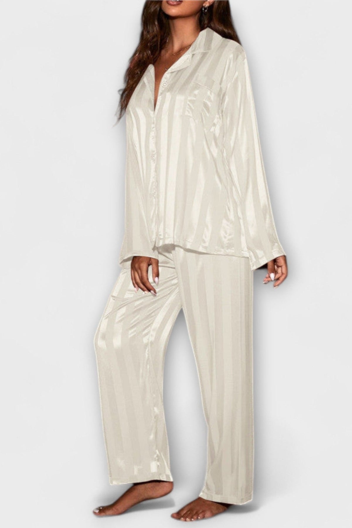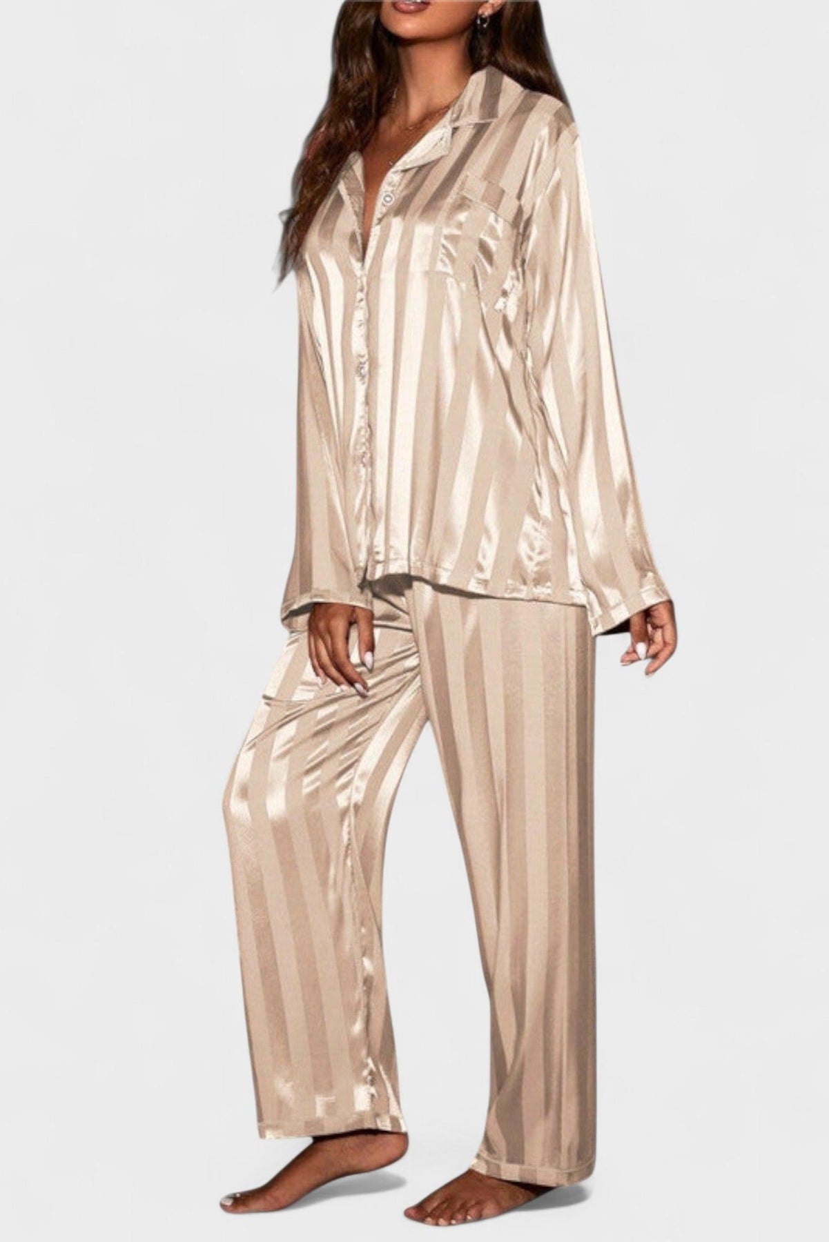 Descubre el Conjunto Laura | Manga Larga, una fusión perfecta de elegancia atemporal y artesanía excepcional. Este conjunto de satén largo no solo se adapta cómodamente a tu piel, sino que también irradia un refinamiento sutil, ideal para esos momentos de relajación o para ocasiones especiales.