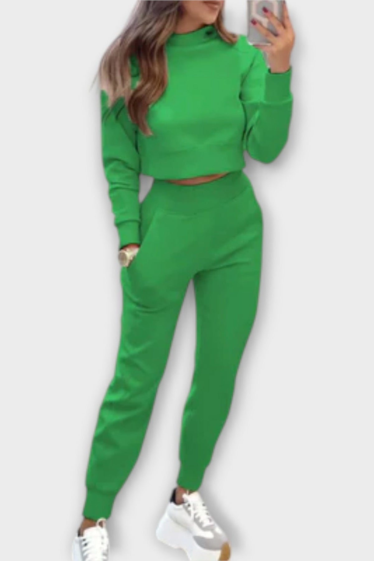 Conjunto Beige Stine combina moda y funcionalidad en una pieza esencial para tu armario. Su diseño moderno y minimalista prioriza tu comodidad, sin sacrificar el estilo. La parte superior corta con cuello alto se empareja a la perfección con los pantalones jogger de tiro alto, creando un look urbano y contemporáneo que te hará destacar.