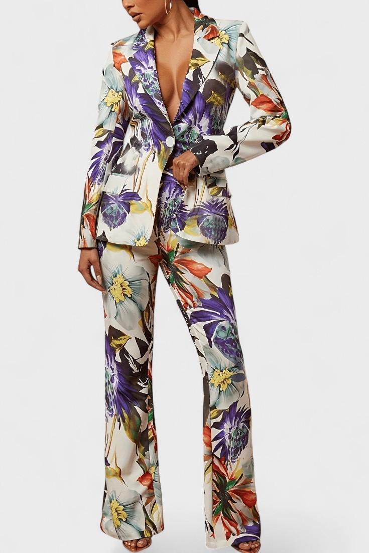 Kirstine | Conjunto es la definición de elegancia atemporal y artesanía excepcional. Este conjunto, que combina un blazer estructurado con un delicado estampado floral, añade un toque de personalidad sin sobrecargar tu look. Elaborado con materiales de alta calidad, cada prenda refleja una herencia de cuidado y atención al detalle.