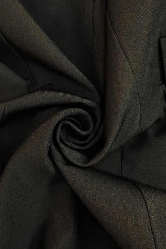 El profundo tono negro irradia una elegancia discreta, mientras que el tejido estructurado y transpirable garantiza un ajuste perfecto y comodidad durante todo el día. Cada pieza está elaborada con materiales de alta calidad, reflejando una durabilidad excepcional y un valor que trasciende el tiempo.
