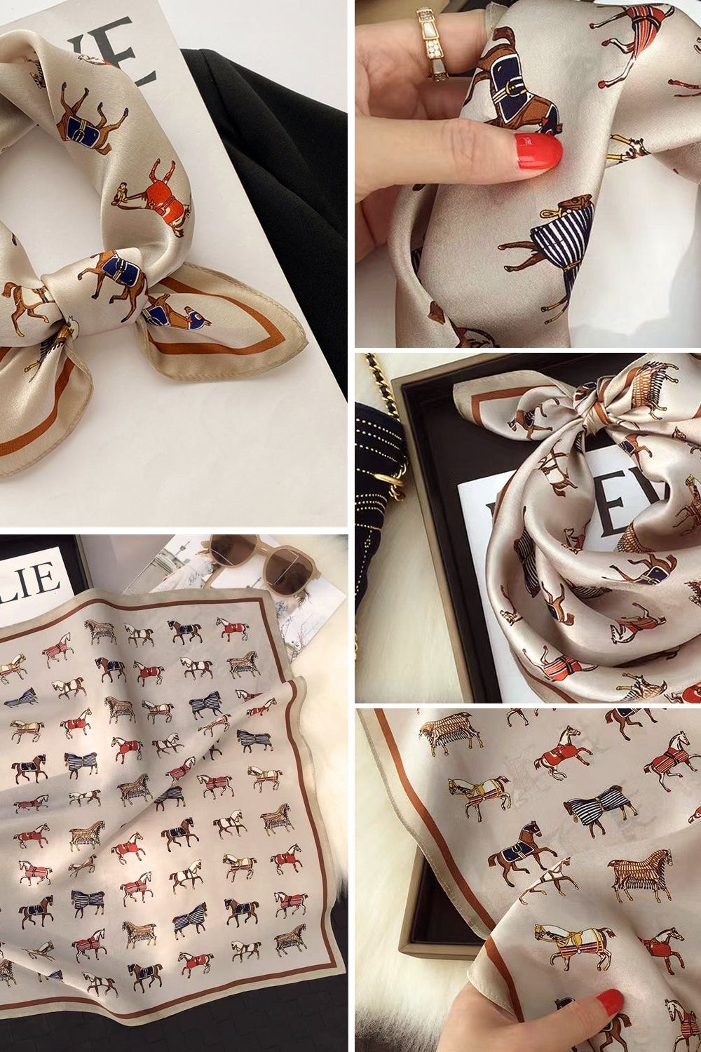 El brillo duradero y el tacto suave de la seda natural garantizan que cada uso sea una experiencia lujosa. Con su exclusivo patrón de temática ecuestre, Ronja se adapta a cualquier estilo, asegurándote que siempre estarás a la moda.