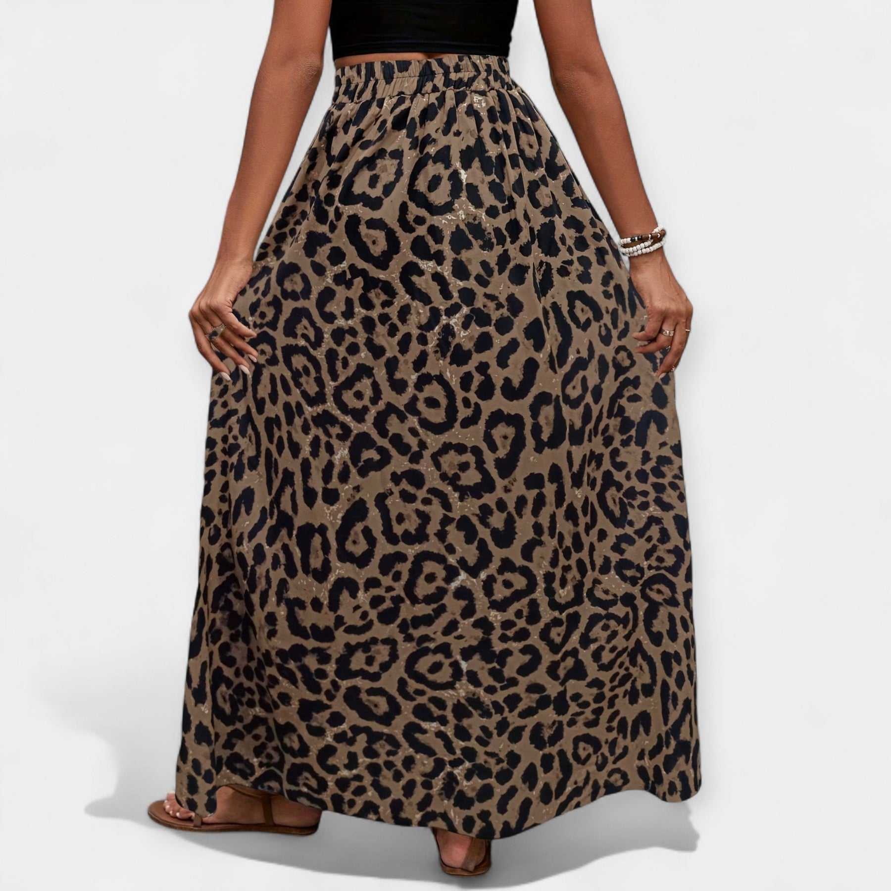 El exclusivo estampado de leopardo aporta carácter sin ser abrumador, mientras que su corte atemporal y ajuste preciso realzan tu silueta con gracia. Con un volumen discreto y una abertura suave, esta falda no solo se mueve contigo, sino que también añade un toque sutil de sensualidad.
